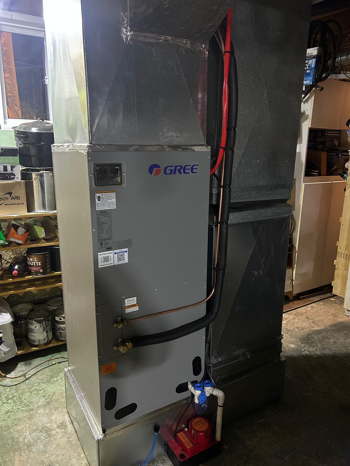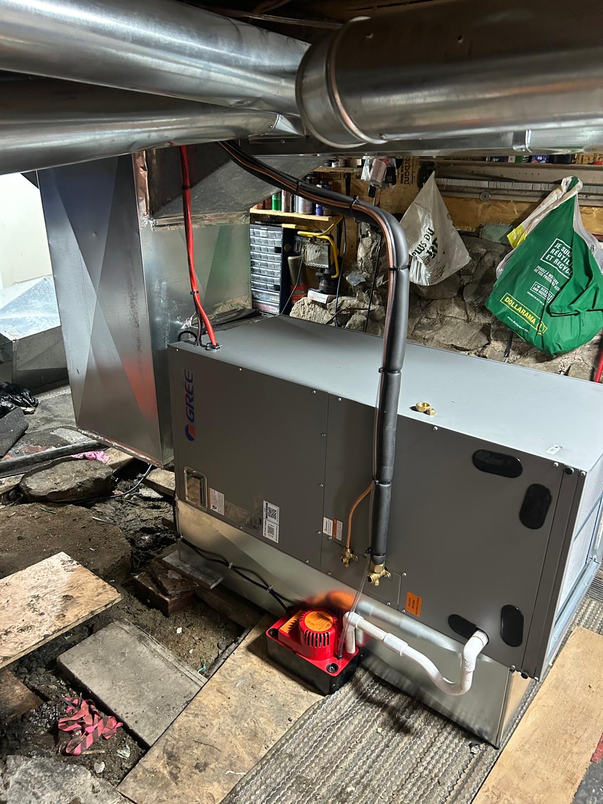 Nous avons récemment remplacé l’ancien système de chauffage d’une résidence à Terrebonne par une thermopompe centrale GREE Flexx Willis 3T. Les propriétaires utilisaient auparavant un système mural combiné à des plinthes électriques.